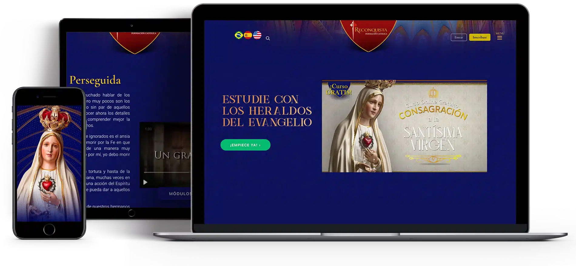 Con la Plataforma Reconquista, tiene una excelente educación católica a su alcance, en cualquier lugar y en cualquier momento. Le facilitamos el aprendizaje: